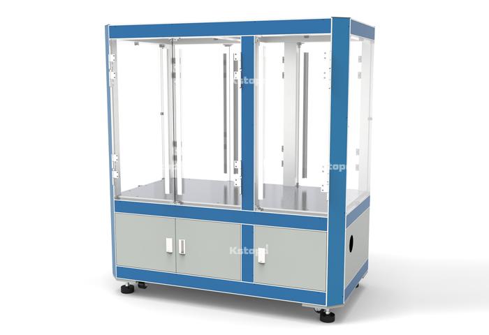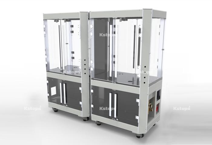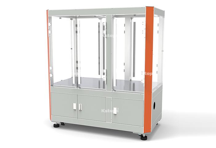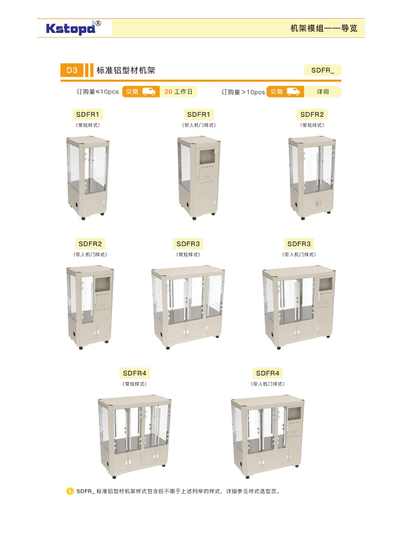 介紹:機架主體由自開模高強度鋁型材拼接而成,型材間均由定位塊卡扣連接,機架即使上端安裝吊裝式四軸機器人高速工作也不會有晃動及變形。門板及四周為12mm厚度透明亞克力視覺效果好;所有主立柱型材和橫梁型材均匹配蓋板,內(nèi)部為布線通道非常美觀方便。工作臺板上部分為工作區(qū)域,下半部分為電器控制柜區(qū)域。工作區(qū)域可安裝輸送模組、機器人設(shè)備等,電器柜區(qū)域安裝電控設(shè)備。