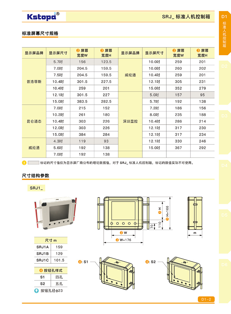 SRJ2至SRJ4箱體為鈑金折彎焊接,堅(jiān)固輕便。SRJ1箱體為型材拼接,輕便美觀。箱體大小可根據(jù)顯示屏大小調(diào)整,適用于多種型號(hào)顯示屏。按鈕孔位和數(shù)量可自由指定。
